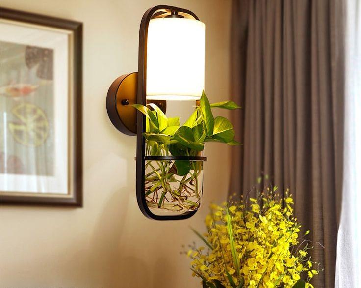 Blend of Light and Nature: A unique wall lamp that combines serene illumination with the beauty of living plants.