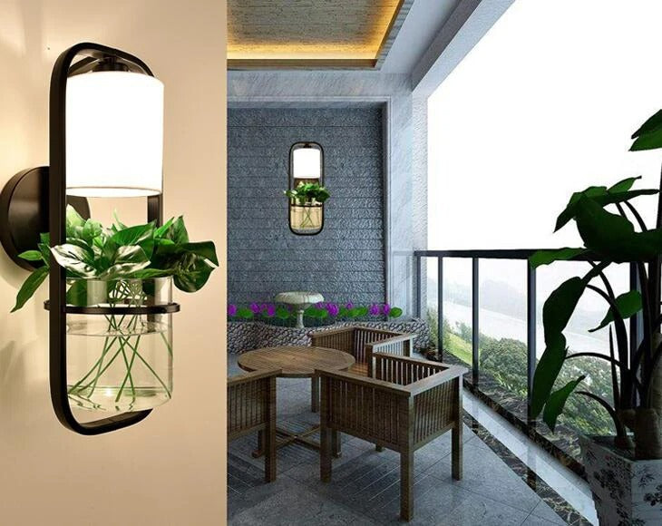 "Elevate your home decor with this versatile wall-mounted lamp that combines ambient lighting with the beauty of natural plants. It can be easily installed in various spaces like bedrooms, living rooms, balconies, or kitchens, adding a refreshing and functional touch to your home. You can place indoor plants that require light in its glass compartment, making it both a practical and stylish choice."